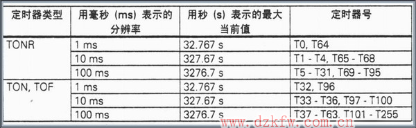 TON、TONR、TOF定時器有三個分辨率。這些分辨率與定時器號有關。