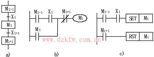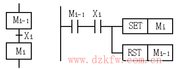如圖1a所示Mi-1、Mi和Mi+l是功能表圖中順序相連的3步,Xi是步Mi之前的轉換條件。