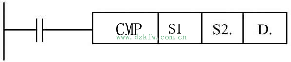 CMP比較指令。CMP指令和MOV指令一樣,是功能指令常用指令之一。它是對兩個數(shù)據(jù)進行比較判別,并根據(jù)判別結(jié)果進行處理。在實際應(yīng)用中,常常只需要其中一個判別結(jié)果。這時,程序中需要編寫需要的程序段。終址位元件D也可直接和母線相連。比較指令的表現(xiàn)形式: