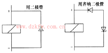 采用二極管或齊納二極管可以抑制直流電源驅動的線圈所產生的浪涌電壓,如圖9所示。