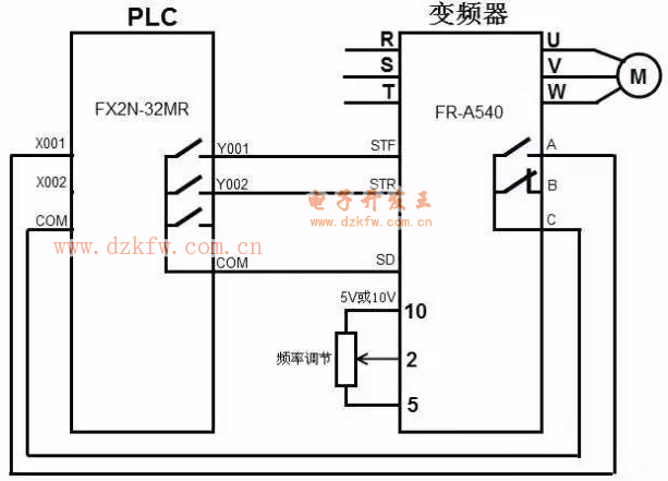 PLC以開關量方式控制變頻器的硬件連接