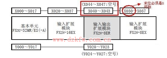 ……X70~X77,X100~X107,注意:沒(méi)有X80~X87,X90 ~X97。對(duì)于輸出的地址分配跟輸入的地址分配是一樣的方式的。
