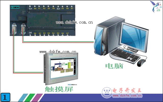 如下面的圖1,當我們把觸摸屏和PLC連接起來以后,在觸摸屏上就能看到我們想看的數據了。除了數據還能通過觸摸屏控制現場設備上的各種被控對象。比如我們在觸摸屏上組態一個開關,只要觸摸屏上點擊一下這個開關,就可以讓現場設備上的一個電機啟動。