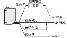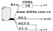 如下圖所示,傳感器的輸出是NPN形式的。從圖中負載接線可知,傳感器動作時,輸出0V(黑線④處)。這就要求,PLC的公共端(COM)是正極。因此,對于此線路,當PLC的公共端接(CON)正極時,PLC的輸入就只能用NPN形式。