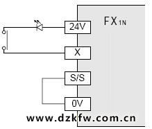 有時,需要在PLC的輸入節點中串入一個發光二極管來為指示。如下圖所示: