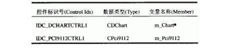 在用戶使用控件編寫程序之前,要先為該控件設(shè)定一個(gè)變量名稱。下面為作圖控件和采樣控件設(shè)定相應(yīng)變量:通過快捷鍵Ctrl+W,打開MFC Class Wizard對(duì)話框,在Member Variables標(biāo)簽中將Class name設(shè)置為CMZRDlg,通過Add Variables?按鈕給其中的控件標(biāo)識(shí)號(hào)添加變量,變量的定義見表2。