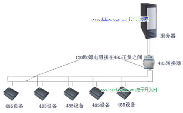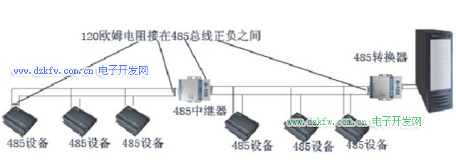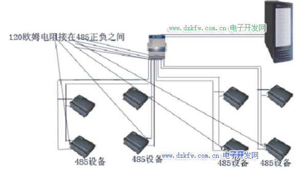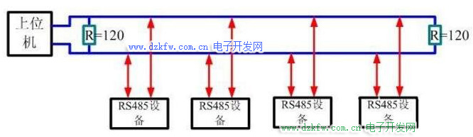 2.為了抑制干擾,RS485總線常在最后一臺(tái)設(shè)備之后接入一個(gè)120歐的電阻(即為上面所述)。