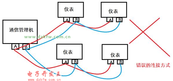 RS485總線要采用上圖手拉手式的總線結構,堅決杜絕星型連接和分叉連接,如下圖: