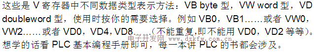 3)、無論V寄存器還是M寄存器,里面的不同數據類型(VB、VW、VD、MB、MW、MD)都是基于寄存器內存總字節地址為偏移地址。