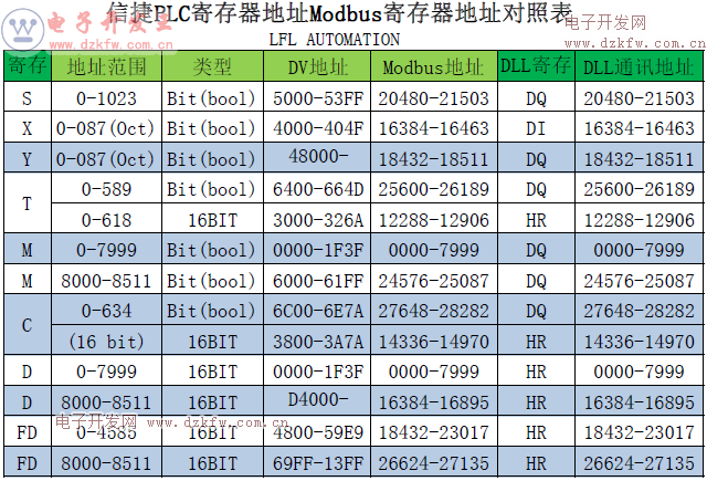 臺達PLC寄存器地址與Modbus寄存器地址對照表