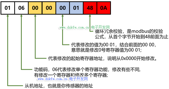00 01-代表修改的值為00 01.結(jié)合前面的00 00,意思就是修改0號寄存器值為00 01;