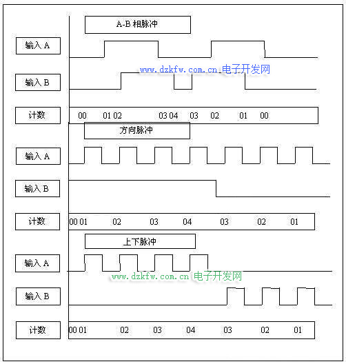 相對編碼的信號有AB相、方向脈沖、上下脈沖三大類