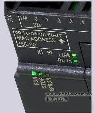 ST40 CPU模塊提供了很多指示LED燈,用來指示CPU模塊的狀態。比如CPU的運行(RUN)、停止(STOP)、報錯(ERROR)指示燈;數字量輸入/輸出指示燈;以太網網絡鏈接(LINK)和數據傳輸(Rx/Tx)指示燈等;