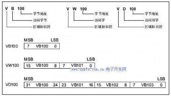 可以看出,VW100包括VB100和VB101;VD100包括VW100和VW102,即VB100,VB101,VB102,VB103這4個(gè)字