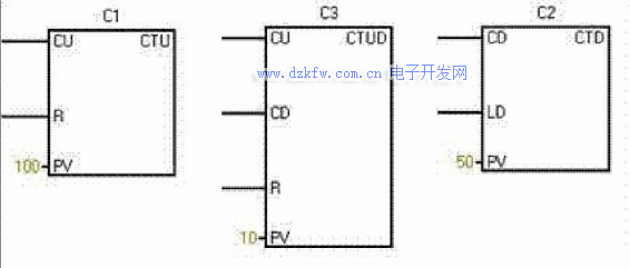 計(jì)數(shù)器指令的梯形圖格式如下圖所示。