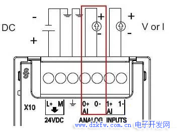 若變送器為三線制輸出的變送器,則接線時(shí),先把變送器的24V電源接上,變送器上的信號(hào)輸出接端0+,0-端子接24V電源負(fù)。