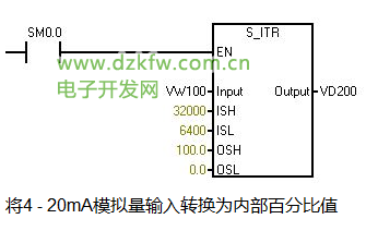 如果有兩個傳感器,量程都是0 - 16MPa,但是一個是0 - 20mA輸出,另一個是4 - 20mA輸出。它們在相同的壓力下,變送的模擬量電流大小不同,在S7-200內部的數值表示也不同。顯然兩者之間存在比例換算關系。模擬量輸出的情況也大致相同。