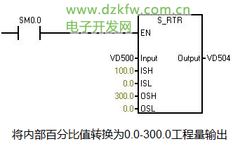在編程軟件中為便于用戶使用,現已將其導出成為“自定義指令庫”,用戶可以添加到自己的Micro/WIN編程軟件中應用。在這個指令庫中,子程序Scale_I_to_R可用來進行模擬量輸入到S7-200內部數據的轉換;子程序Scale_R_I可用于內部數據到模擬量輸出的轉換。