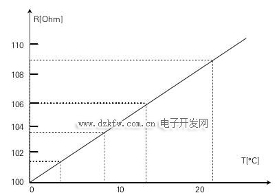 PT100在0度時電阻為100,隨著溫度的變化電阻星線性變化,大約是每攝氏度0.4歐姆。