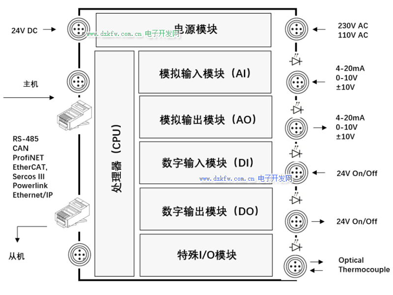 4. 模擬輸出模塊(AO),將CPU的指令轉換成模擬量輸出。
