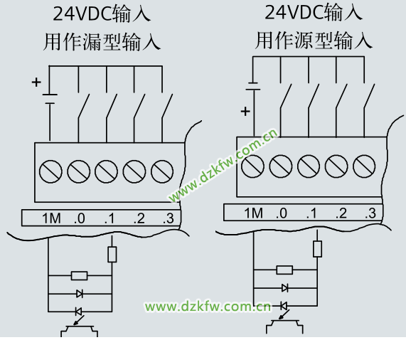無(wú)源輸入:表示只需要工作電源,不需要控制電源(如按鈕,行程開關(guān)等)如下圖所示為無(wú)源輸入種類