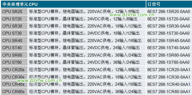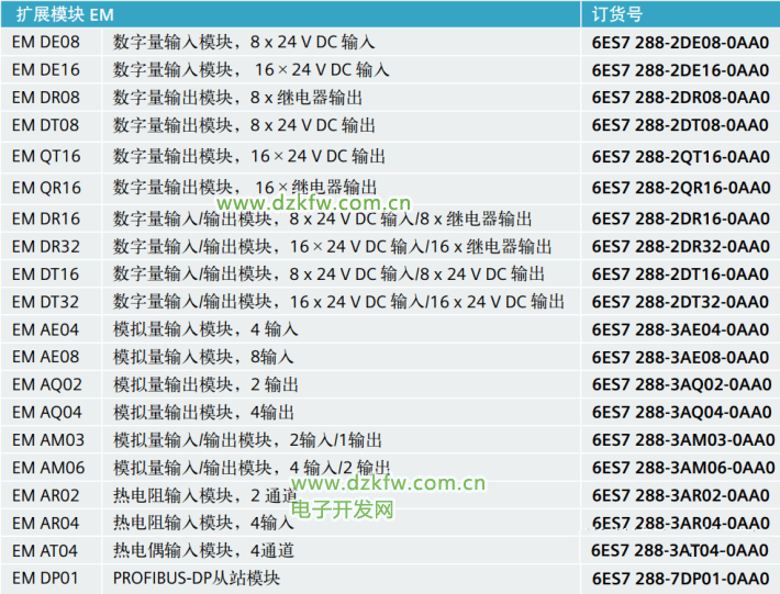 標(biāo)準(zhǔn)型的CPU最多可擴(kuò)展6個(gè)擴(kuò)展模塊,可擴(kuò)展數(shù)字量、模擬量以及熱電阻/熱電偶模塊,用戶可根據(jù)自己需求購(gòu)買對(duì)應(yīng)模塊。