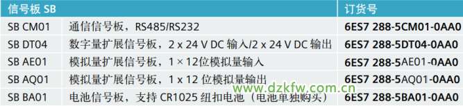 標(biāo)準(zhǔn)型的CPU可擴(kuò)展一個(gè)信號(hào)板模塊,對(duì)于少量數(shù)字量或者少量模擬量采集可使用信號(hào)板擴(kuò)展,信號(hào)板還可以擴(kuò)展一個(gè)通信模塊,用于RS485或者RS232通訊,還可添加一個(gè)電池信號(hào)板,可用于PLC 時(shí)鐘保持