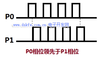 該方式下P0和P1以相同的速率發出脈沖信號,電機的轉向由P0和P1的相位決定。