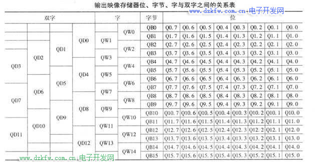 輸出映像存儲器位、字節、字與雙字之間的關系,見上面圖表。