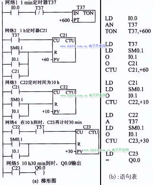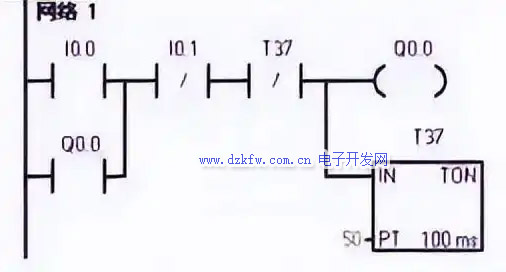 2. 延時停止控制 定時時間到,延時停止。I0.0 為啟動按鈕、I0.1 為停止按鈕。