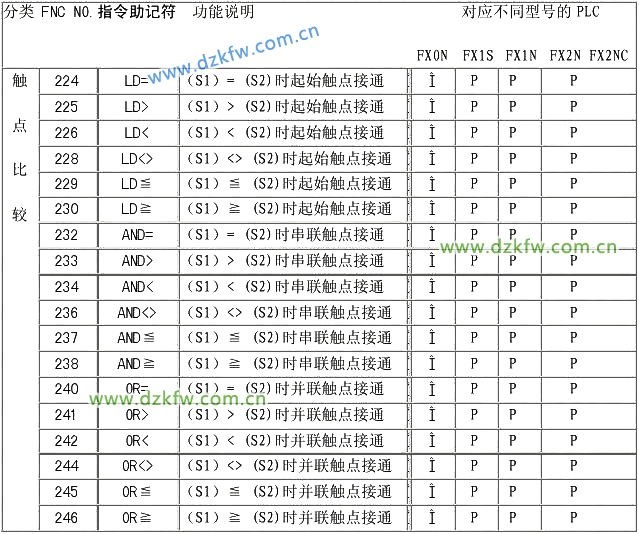 2)OR、ORI、ORP、ORF指令的目標元件為X、Y、M、T、C、S;