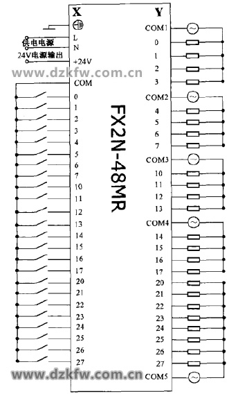 FX2N-48MR繼電器模塊接線圖