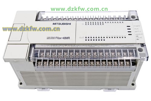 FX2N-48MR-001單元共有24個(gè)數(shù)字量輸入端子和24個(gè)數(shù)字量輸出端子。其中24個(gè)輸入端子為一組,共用公共端COM。 N, L兩個(gè)端子提供DC 24V/400mA傳感器電源,可以作為傳感器的電源輸出,也可以作為輸入端的檢測(cè)電源使用。24個(gè)數(shù)字量輸出端子分成五組: