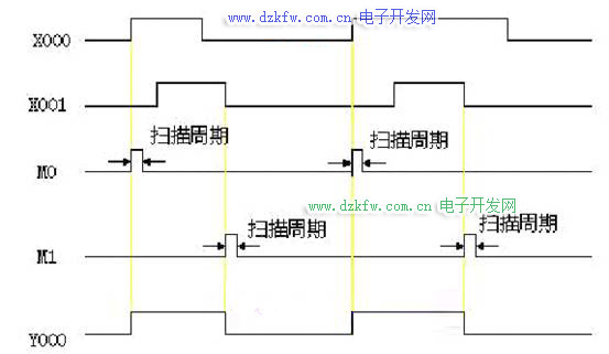 •使用PLF指令時,僅在驅動輸入OFF后1個掃描周期內,軟元件Y、M動作。