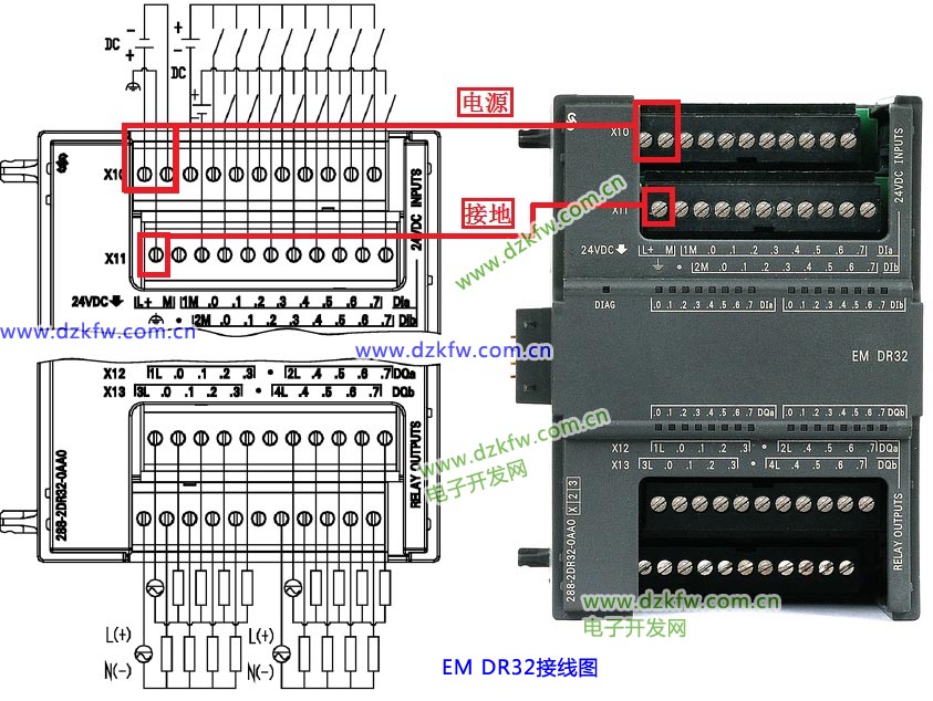 西門子S7-200SMART PLC的DR32、DR16和DR08模塊 接線圖