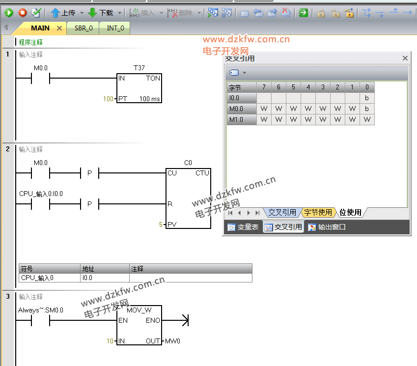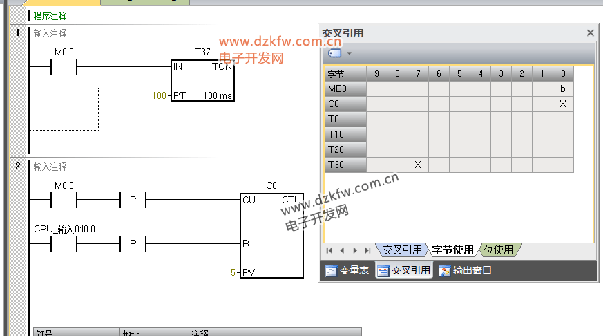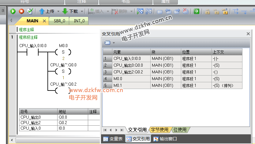 如上圖中,交叉引用中顯示了,程序中使用了I0.0,并且I0.0位于主程序塊程序段1中,而且使用的是常開點;