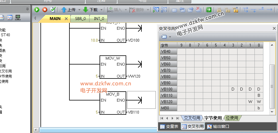 B 表示已分配存儲器的一個字節,一個字節8位,例如上圖中使用了VB110,用B表示,并且V110.0到V110.7都不能使用了;