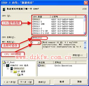 這里我們可以對(duì)CPU的型號(hào)名稱與MPI通訊站地址進(jìn)行修改與設(shè)定