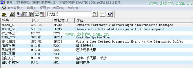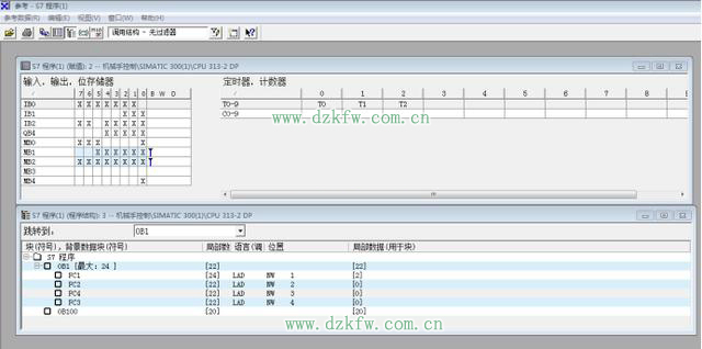 打開程序,用右鍵點擊SIMATIC管理器左面窗口的【塊】執行出現的快捷菜單中的命令【參考數據】-【顯示】,出現如下窗口: