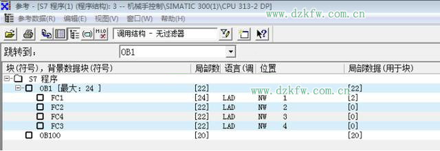 程序結構顯示用戶程序中塊的分層調用結構,通過它可以對程序所用的塊、它們的從屬關系以及它們對局部數據的需求有個概括的了解如下圖所示: