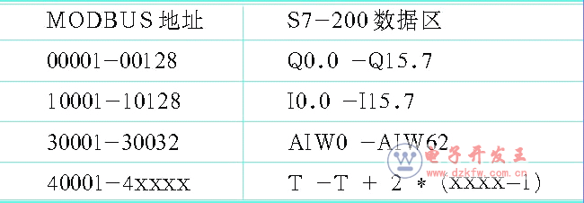 4 MODBUS RTU地址與S7-200的地址對應關系