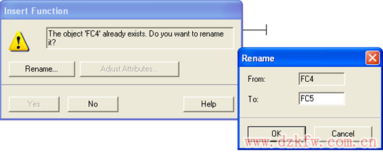 打開要設置該屬性的程序塊,在“File”菜單中找到“Store Read-Only”,在第一個彈出對話框中直接點擊確認。在第二次彈出的對話框中,點擊“Rename”,將名字FC4更改為FC5。點擊確認后,會另存為一個只讀的FC5。打開FC5時,會提示該程序是只讀的。只能瀏覽,在線監控,無法修改FC5中的內容。