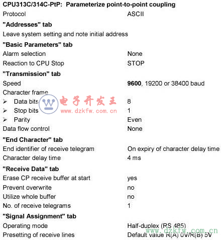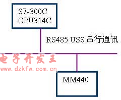 本例中選用 S7-300 CPU 314C-PtP 作為 RS485 USS 串行通訊主站,連接一個 MM440 變頻器。連接多個 MM440 時與之相同。