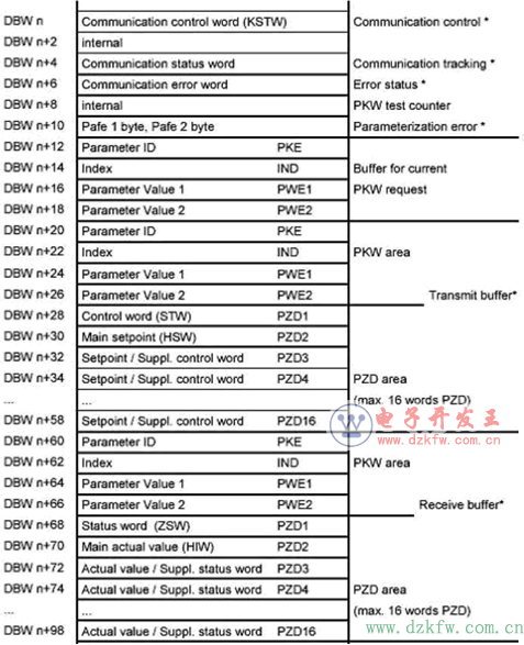 讀寫多個站時必須使 PKW 和 PZD 數量相同且站號連續。DB50,100 任選,DB10 用于串口通訊塊。這些數據塊在啟動 CPU 時自動生成,不用在程序中新建。