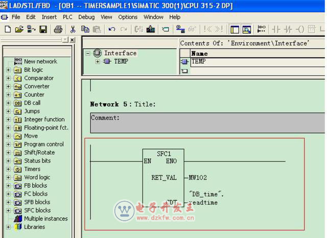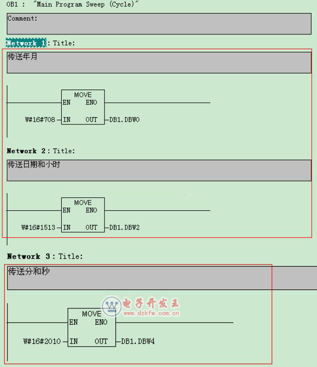 在OB1中調用SFC1讀取系統時鐘并將系統時間傳送給“DB_time”.readtime變量: