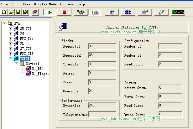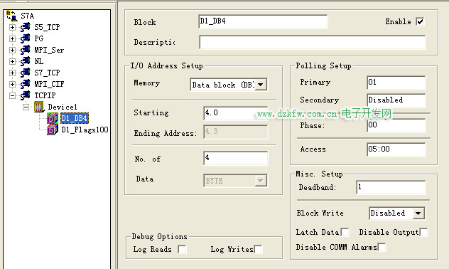 打開系統配置,添加并配置S7A驅動。配置好設備及塊地址后,監視通訊狀態是否良好。