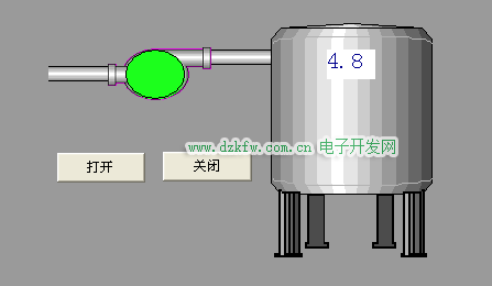 新建畫面,添加管道、水泵、出水罐等標簽。然后關聯數據庫中的變量。運行畫面后當按下水泵啟動按鈕后,水泵啟動指示燈變為運行狀態(綠色),同時液位會按照一定速率升高。當液位高于設定值時,會產生液位高報警,提示操作人員液位異常。停止水泵運行,液位保持不變。