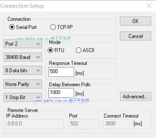 如果出現timeout,說明通訊沒有連接上,可能是你的連接參數沒有選擇對,或者是設備ID(通訊接口)錯誤
