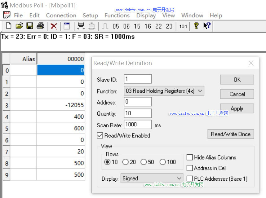 Adress指寄存器起始位置,Quantity指從起始位置到后面的數量,可以自己選擇