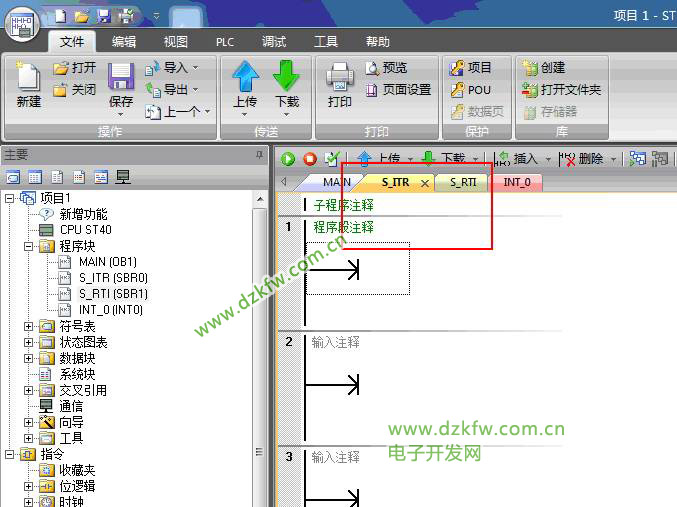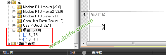 使用STEP 7-MicroWIN SMART先建立兩個子程序,分別命名S_ITR和S_RTI。